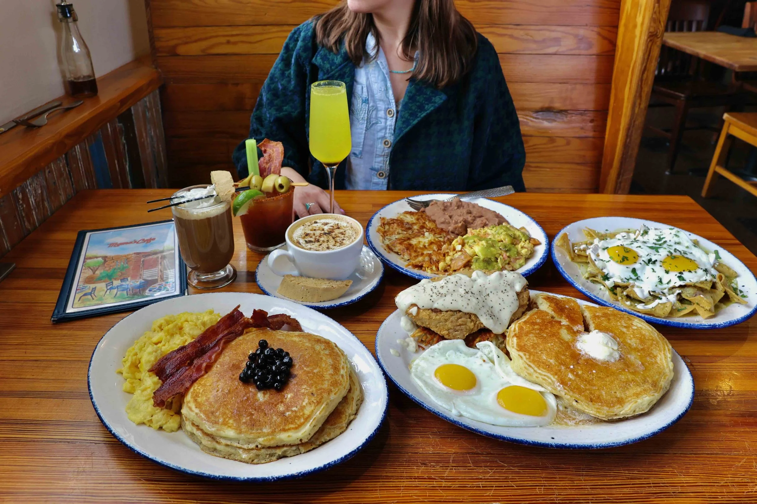 eggs, bacon, real maple syrup (Chocolate Chip or Wild Blueberry +1)